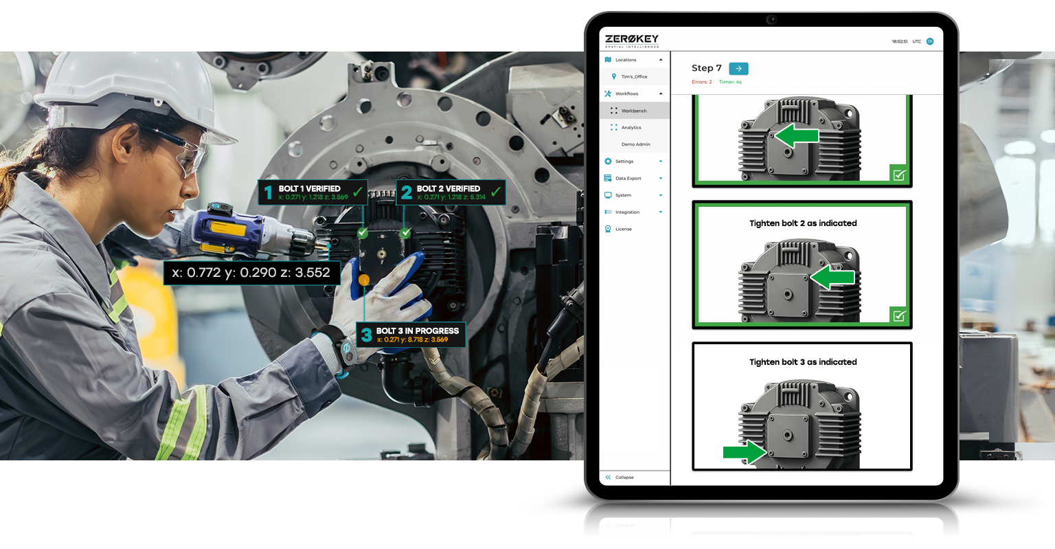 ZeroKey integrates hyper-accurate real-time location data with smart torque tools to enforce tightening locations and sequences, verify torque at every fastener, and ensure no steps are skipped. An optional tool lockout feature can also be enabled to eliminate assembly errors entirely.