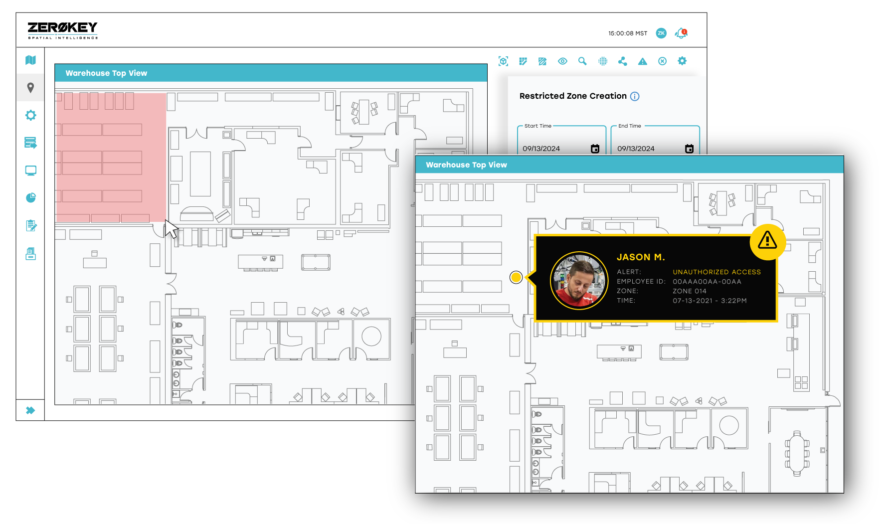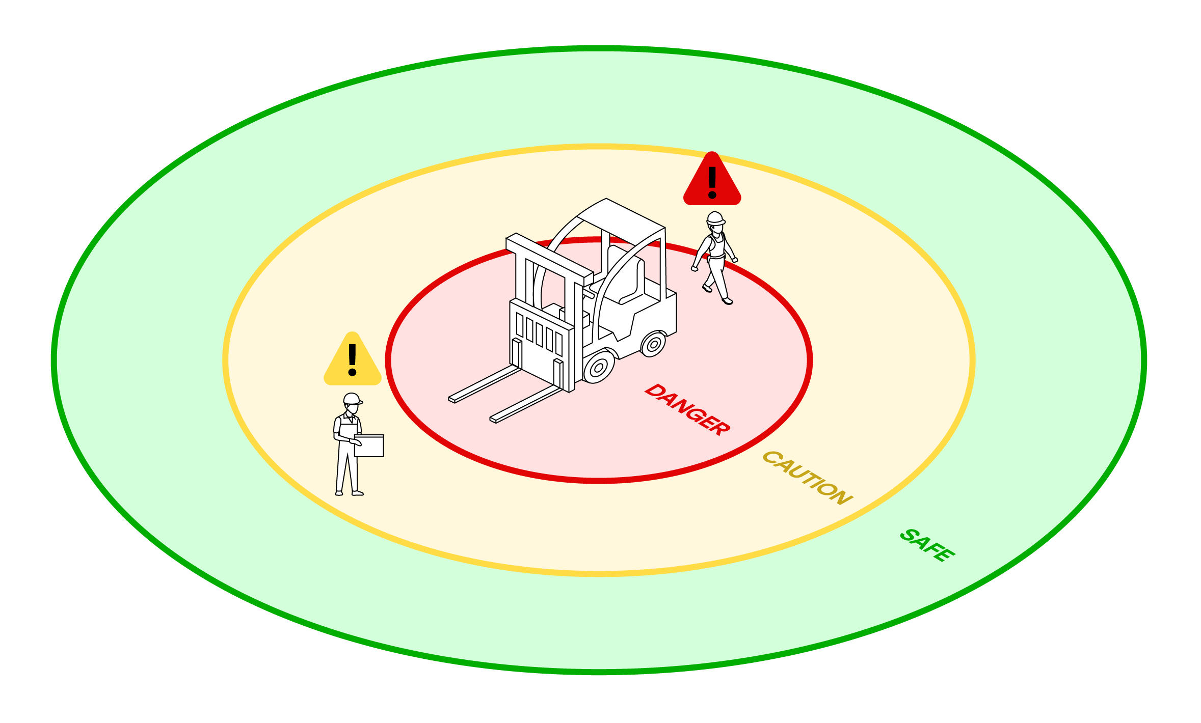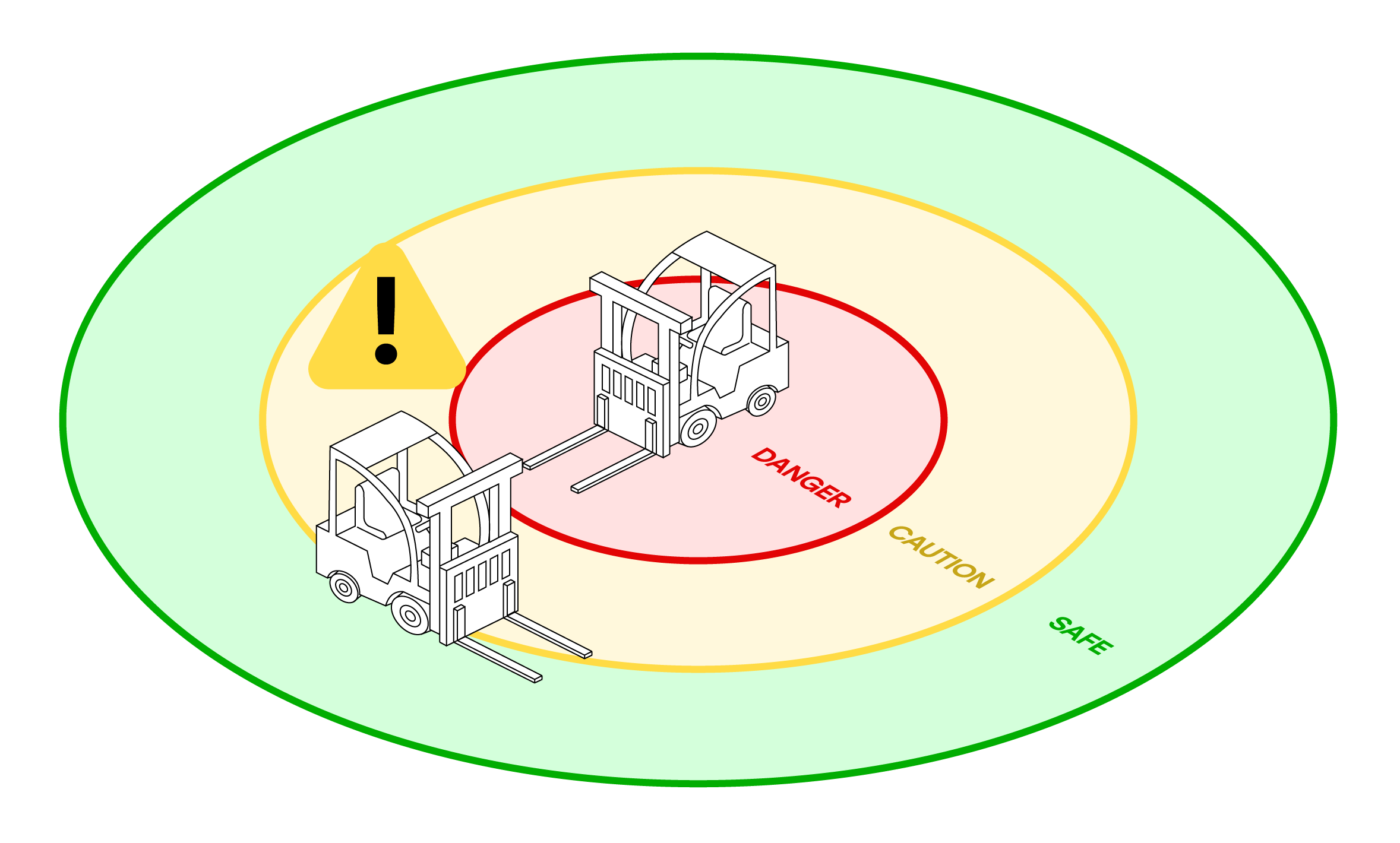 ZeroKey creates facility-wide dynamic 3D safety zones around equipment and pedestrians, automatically enforcing safety rules with real-time haptic and audible alarms when buffers are breached.