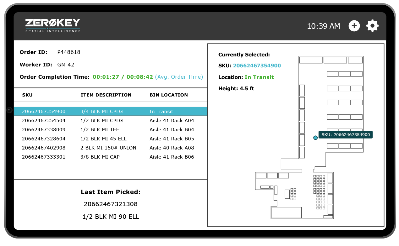Use ZeroKey’s Spatial Intelligence Platform to create picklists, ping assets, and visualize your floor in 3D, or integrate movement data directly into your MES, WMS, or ERP through our open API.