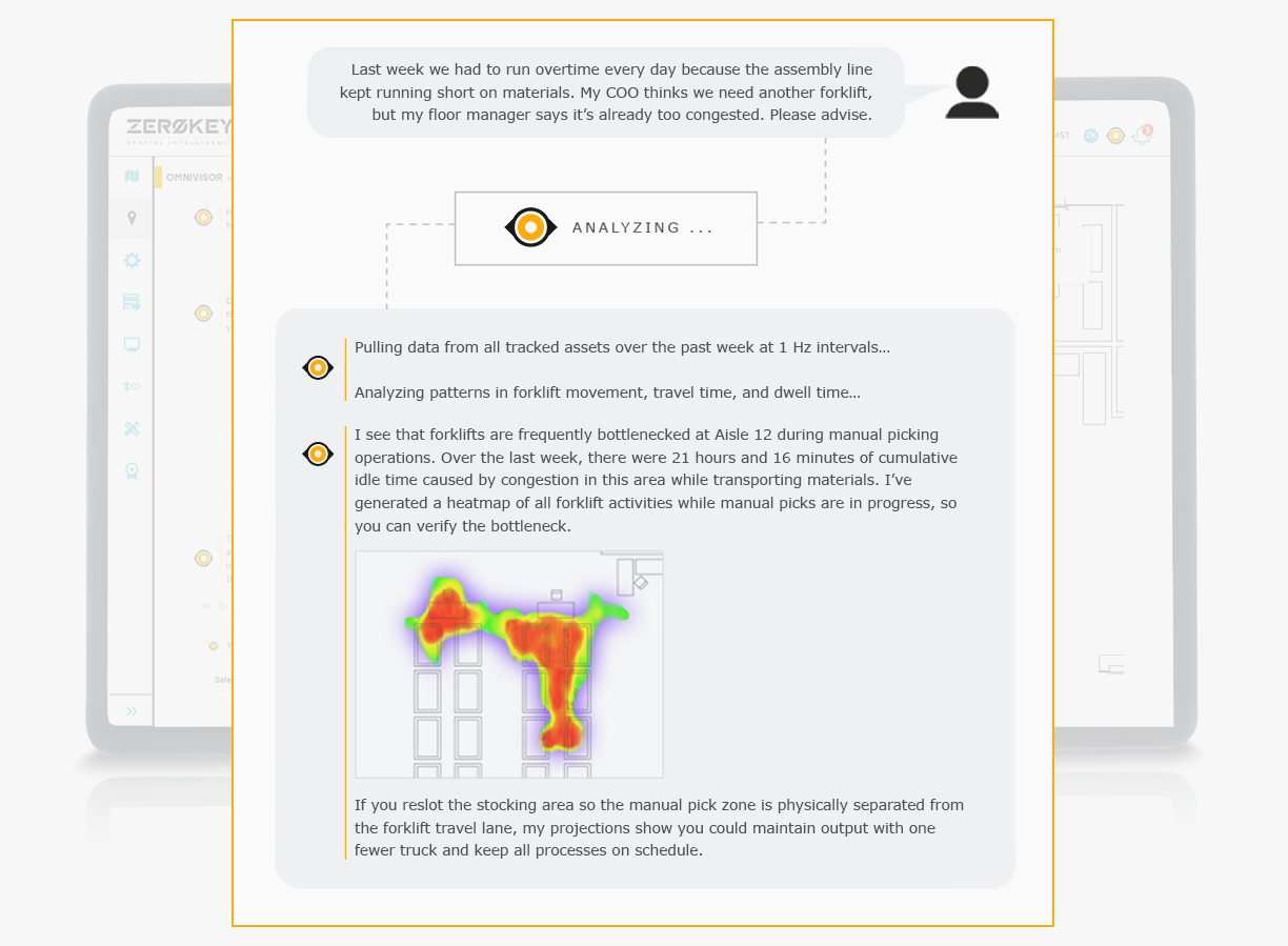 Built on millimeter-accurate location data from ZeroKey’s Quantum RTLS 2.0™, OmniVisor AI™ is the first agentic intelligence engine that understands physical movement and process dynamics, enabling factories to self-diagnose inefficiencies and self-correct in real-time.