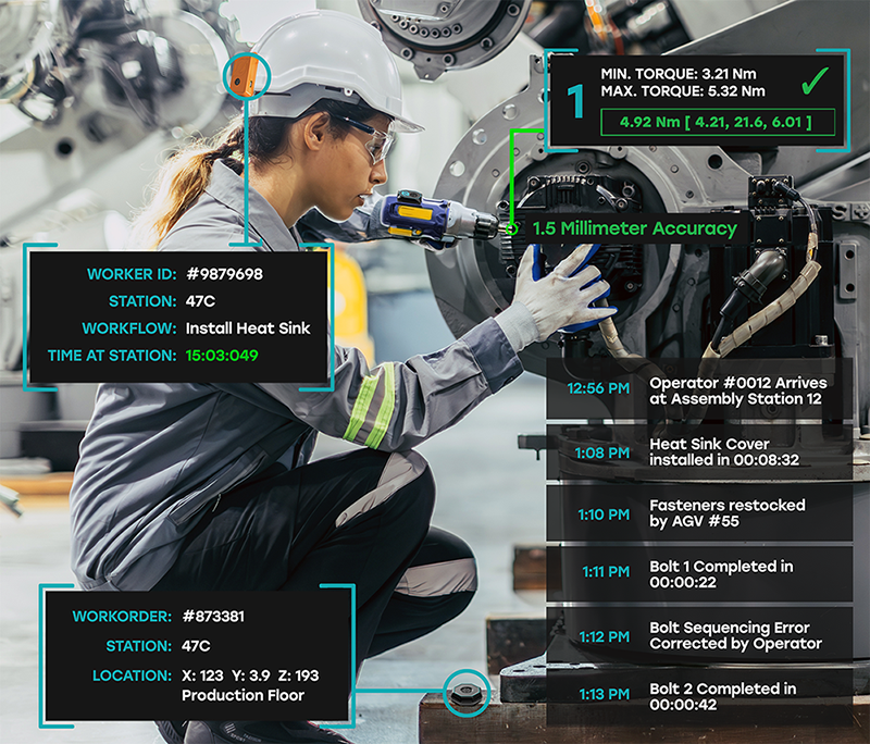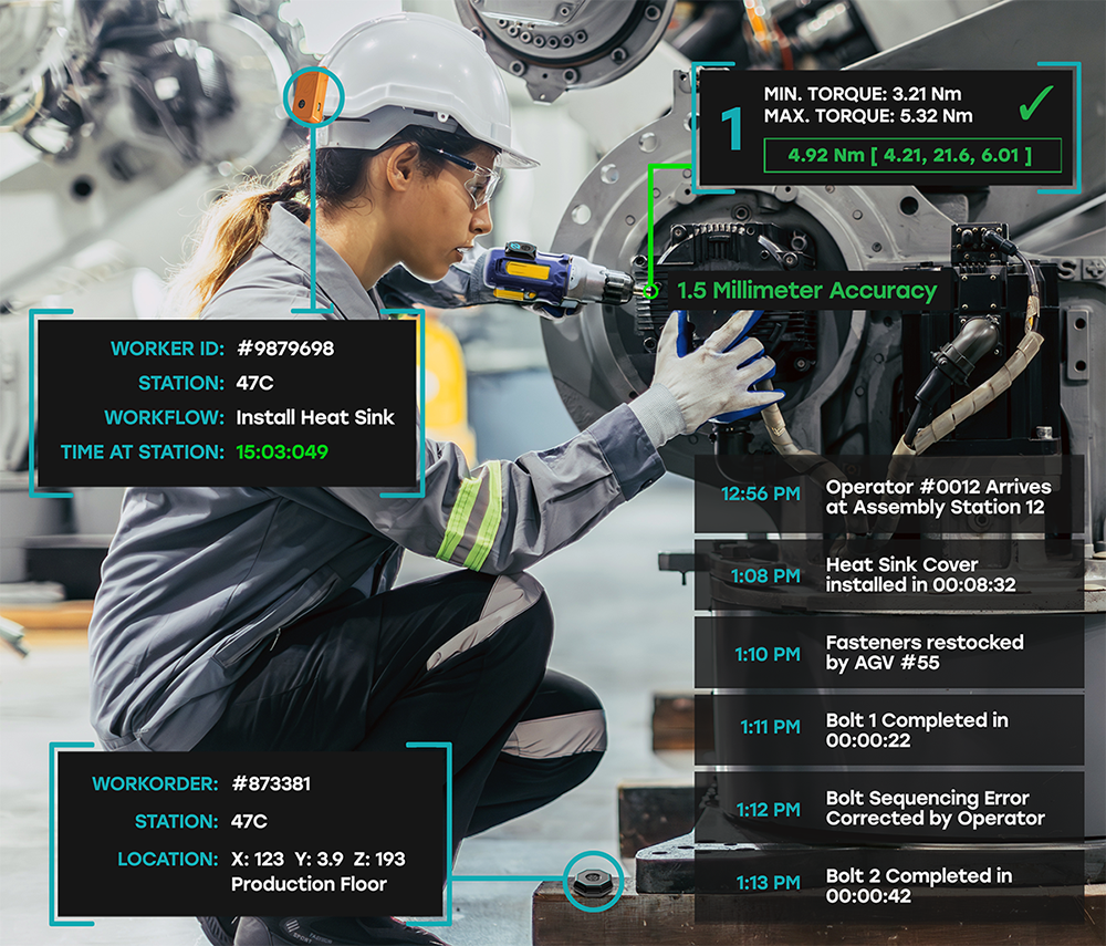 With millimeter-accurate Quantum RTLS™ fused with OmniVisor AI™, every movement of a work order is automatically recognized as it flows across stations. From time spent at each workstation to delays in transit, the entire labor journey is captured and contextualized as it occurs. Labor time recognition becomes a living timeline that is precise, automated, and actionable.